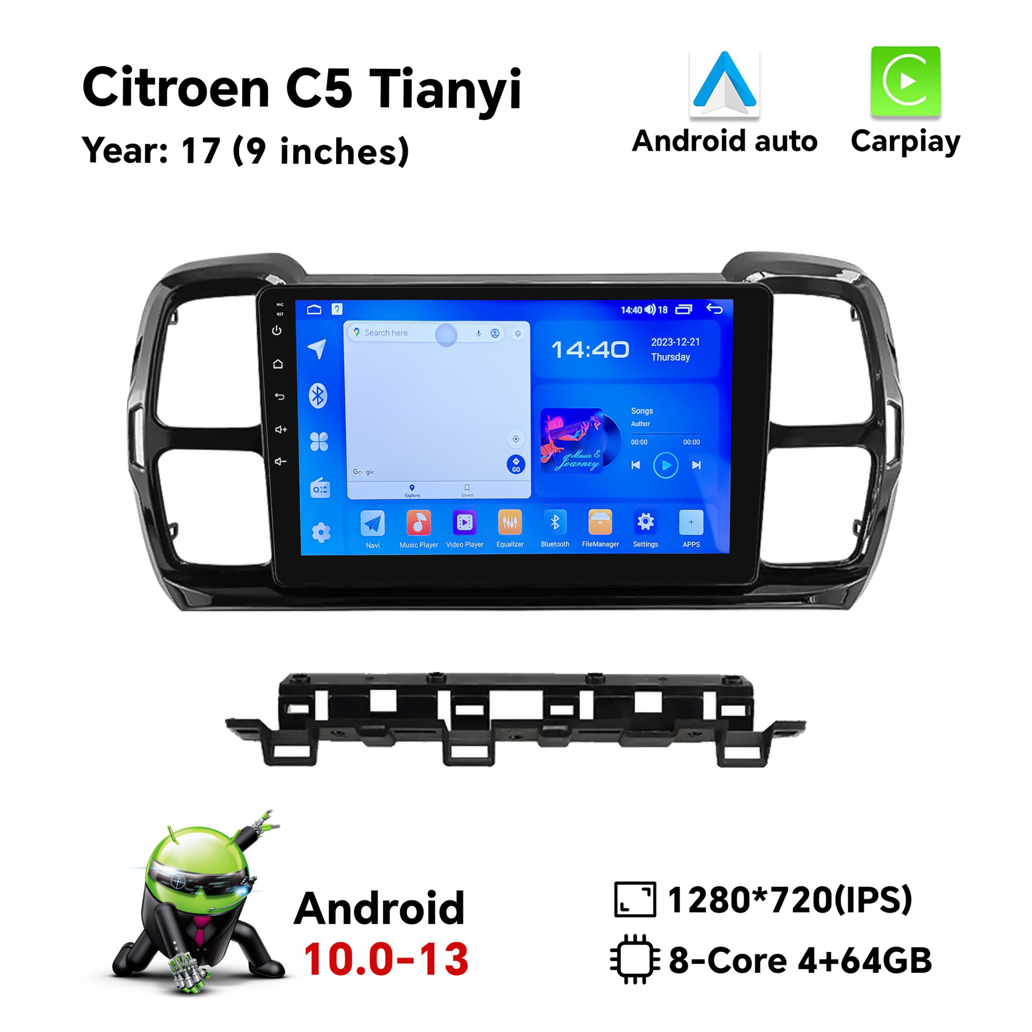 Designed specifically for Citroën C5 models, this Android screen is simple to install without requiring major modifications. It maintains the sleek aesthetic of your car’s interior while enhancing its technological capabilities. Our product supports multiple media formats, integrates with your car’s controls, and is built to withstand long drives and varied weather conditions.