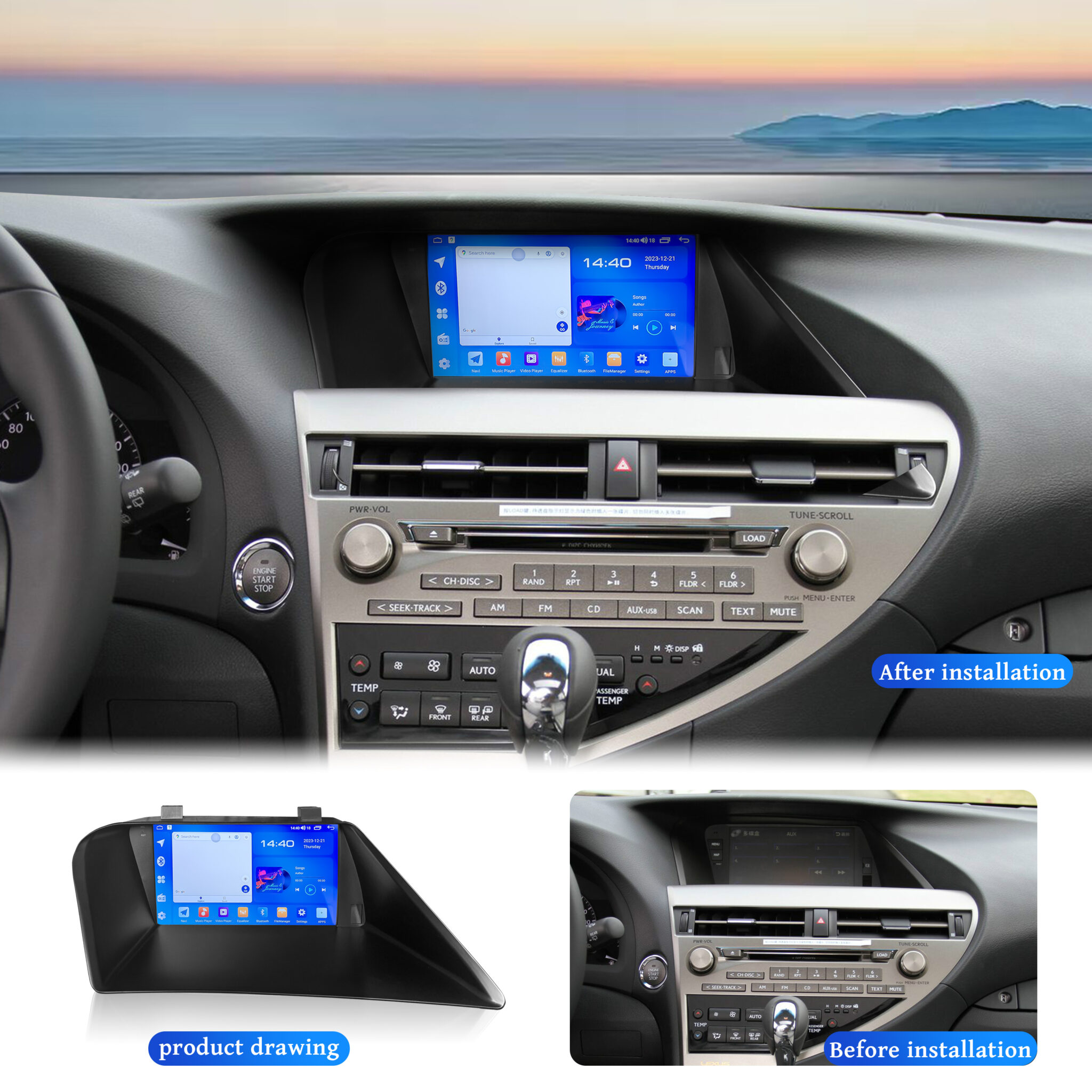 Designed with Lexus RX270 and RX350 models in mind, this multimedia system guarantees a flawless fit and performance. Installation is hassle-free and doesn’t require special modifications to your vehicle’s interior. Additionally, the system is engineered to work seamlessly with factory settings and controls, preserving the luxurious driving experience that Lexus is known for. Compatible with both Android and iOS devices, it offers universal accessibility, ensuring every driver can enjoy the premium features it provides. Whether you’re streamlining communication or listening to your favorite tunes, this multimedia upgrade delivers unparalleled convenience and performance. Investing in this Android multimedia system enhances your Lexus RX with modern connectivity and technology you can rely on. Its combination of durability, functionality, and elegant design sets it apart from generic options. Ideal for both tech-savvy drivers and those seeking a simple, user-friendly upgrade, this solution brings everything you could want in a multimedia upgrade for your Lexus RX series.